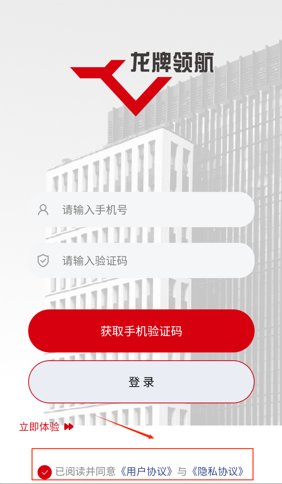4、登录时需要输入注册时使用的手机号码,获取并填写正确的短信验证码,同时要记得勾选同意用户协议选项。