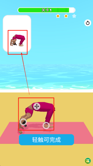 3、模仿动作:在关卡界面,观察示例动作后,轻触屏幕下方的“轻触可完成”按钮模仿动作。