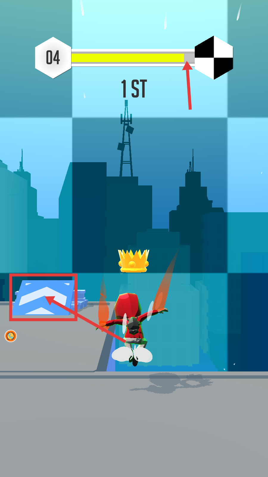 3、拾取【蓝色箭头-加速道具】,借助提速效果猛冲终点,利用道具优势扩大排名差距。