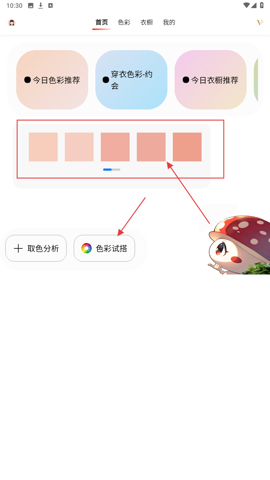 2、获取后在下方查看推荐色彩,还可以点击【色彩试搭】。