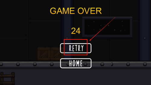4、游戏结束:点击“RETRY”按钮重新开始当前关卡,或者点击“HOME”返回主菜单。