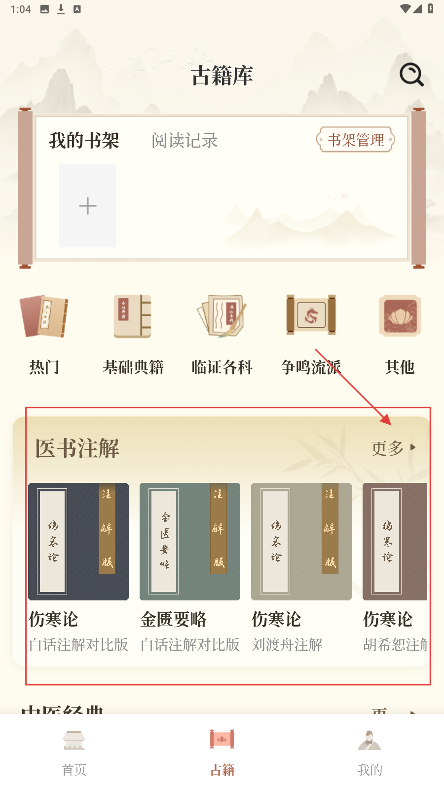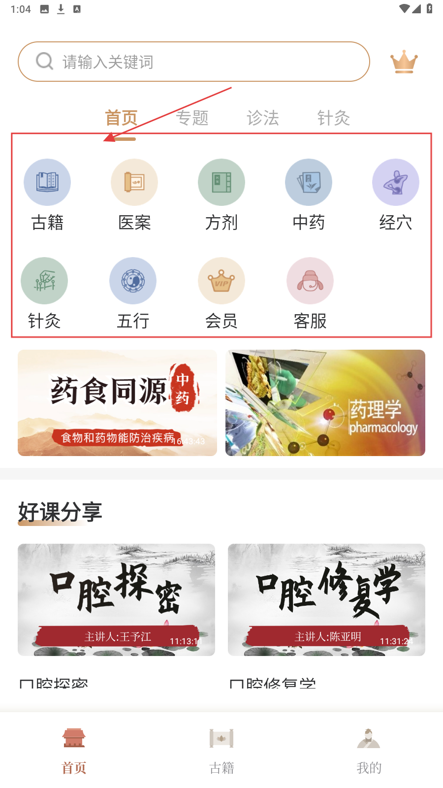 1、进入首页,选【古籍】,进入古籍库探索中医经典资源。
