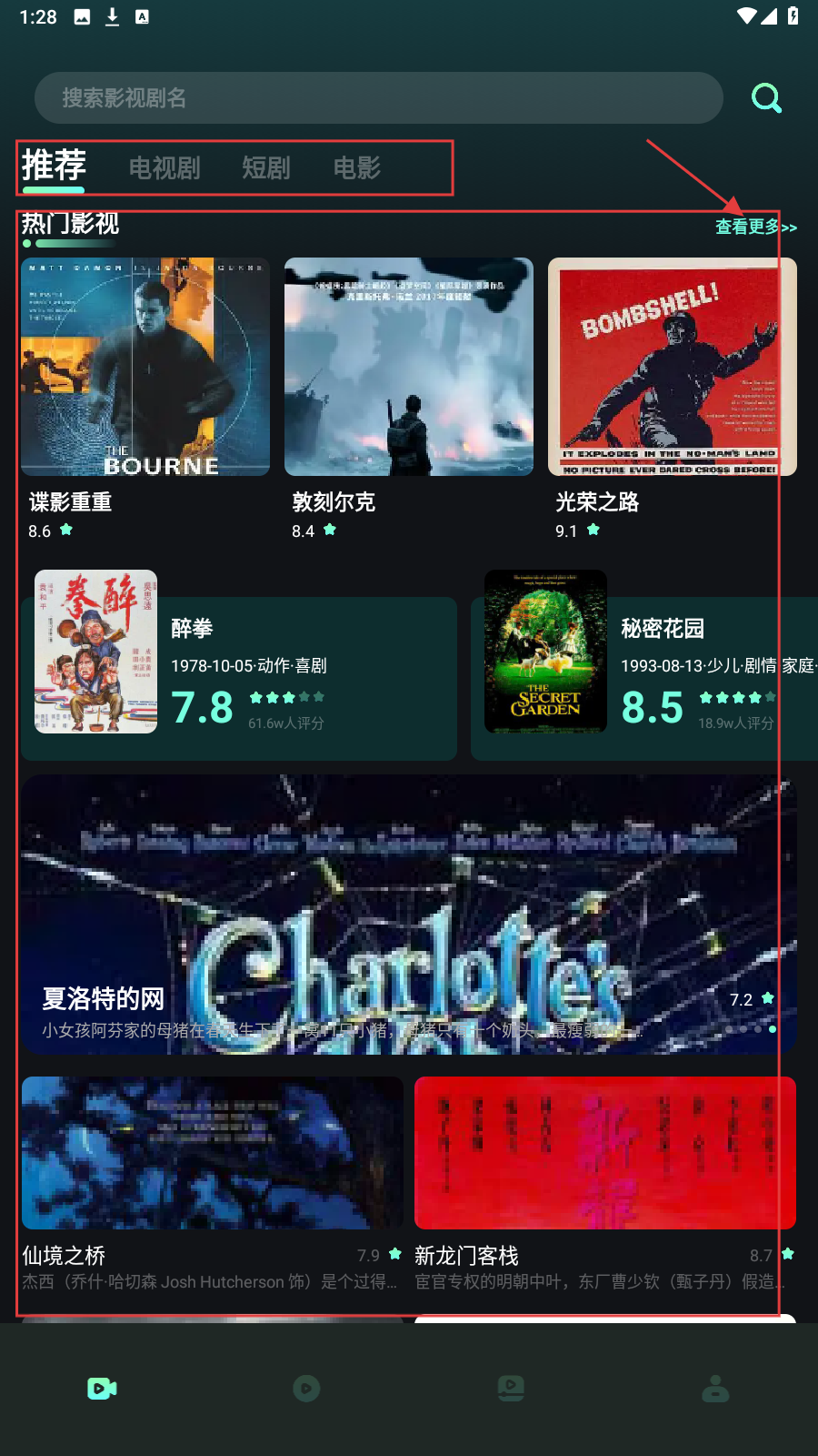 1、进入影视页面,选【推荐】栏,点热门影视【查看更多】找心仪影片。