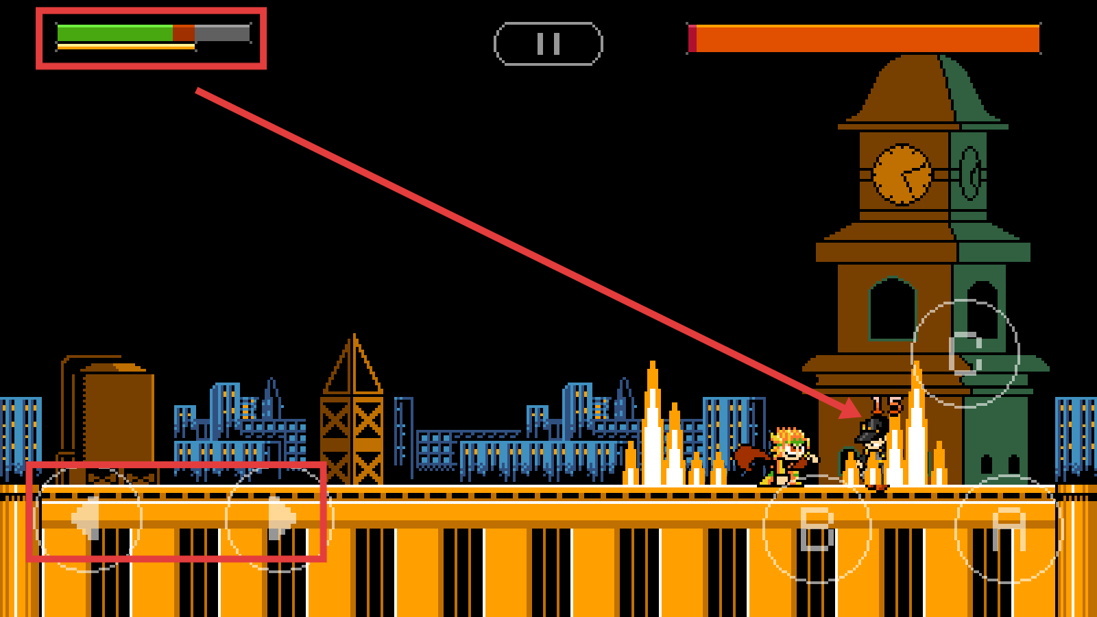 3、战斗时通过左下角方向键操控走位,紧盯左上角血条,灵活应对敌人攻击保生存。