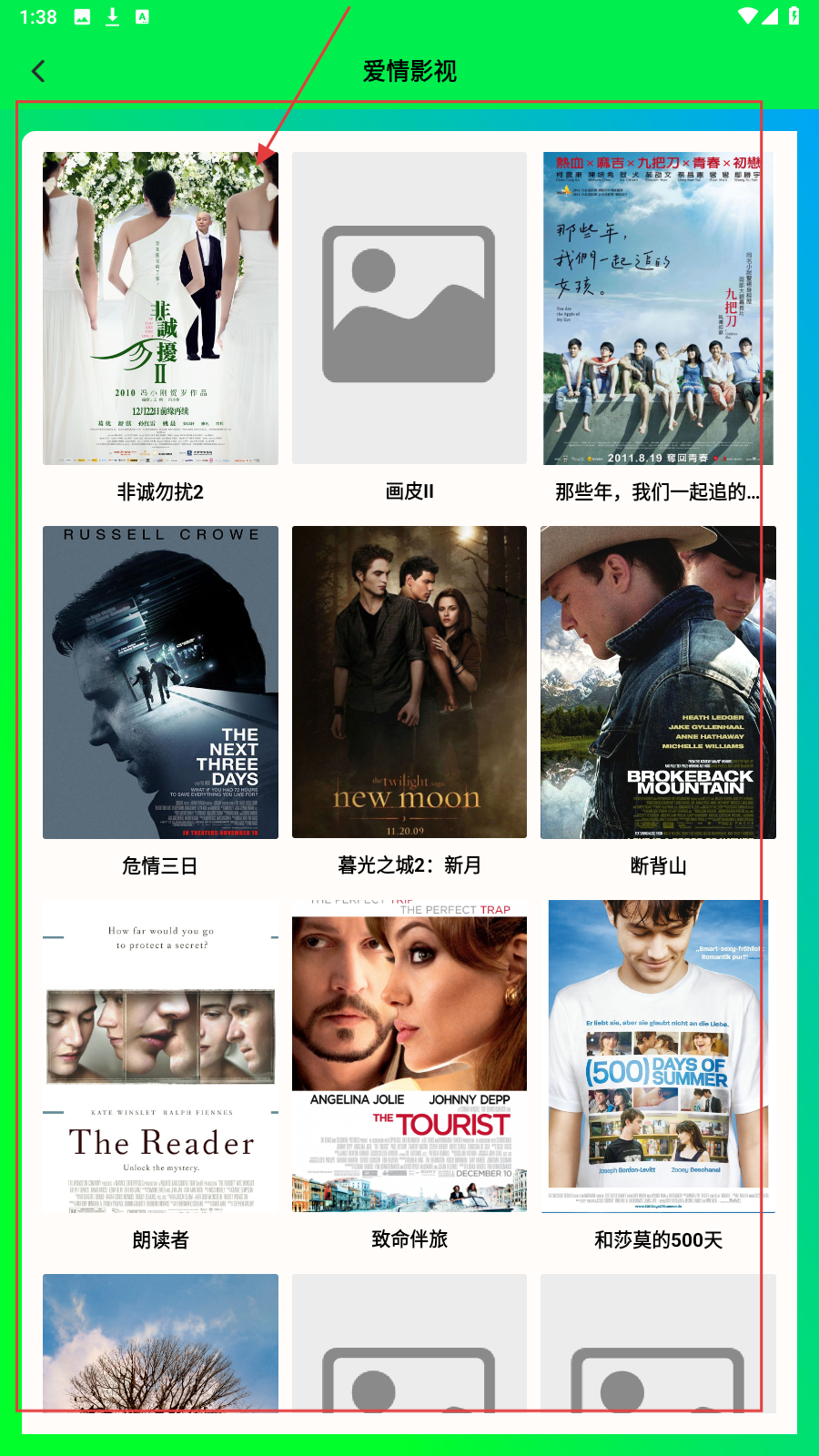 4、在【爱情影视】列表,选影片如《非诚勿扰2》,进入详情页了解或播放。