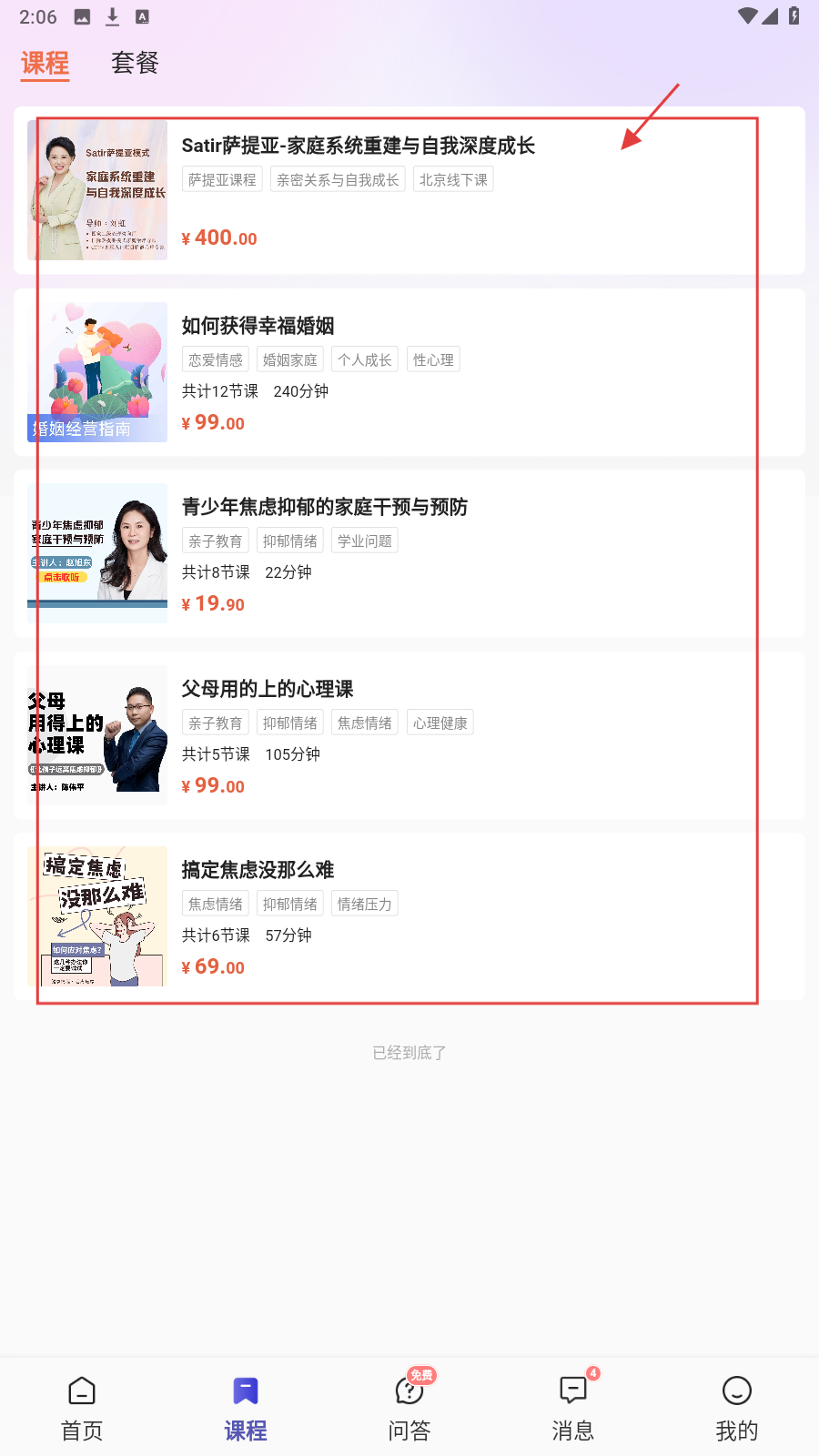 4、切换【课程】页,查看课程列表,可以选择心仪的课程进行观看学习。