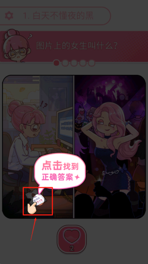 3、确认答案:点击“点击找到正确答案”提示,确认你找到的不同点是否正确。