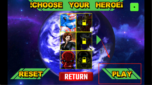2、在“HEROEi”页面选好英雄后点“PLAY”。
