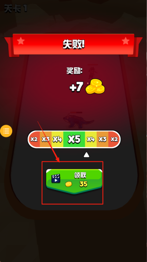 4、领取奖励:战斗结束显示“失败”后,点击“领取”收集奖励。