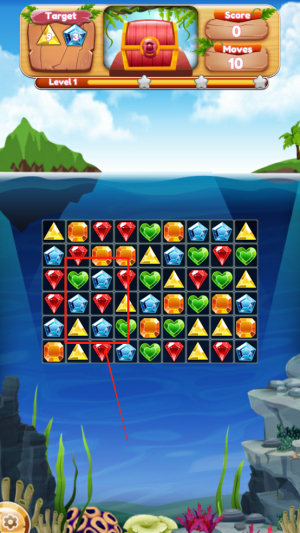 1、玩法聚焦海底三消:核心是宝石匹配与关卡闯关,特色在于 “海洋主题 + 宝藏收集” 结合,区别于普通消除游戏。