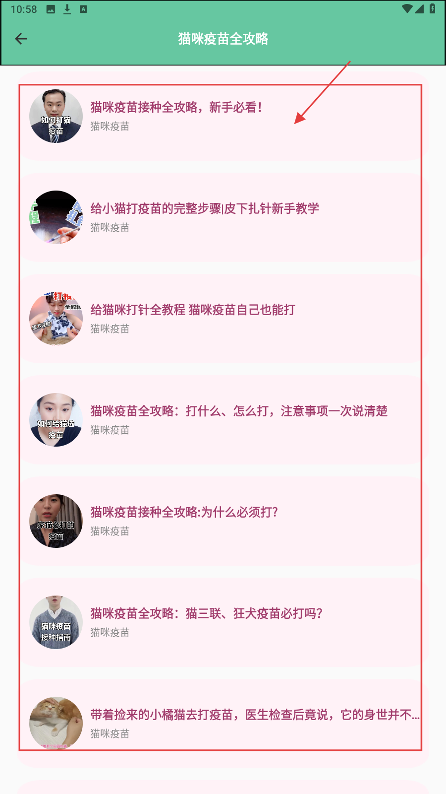 2、进入【猫咪疫苗全攻略】页面,选择要查看的科普文章并点击进入。