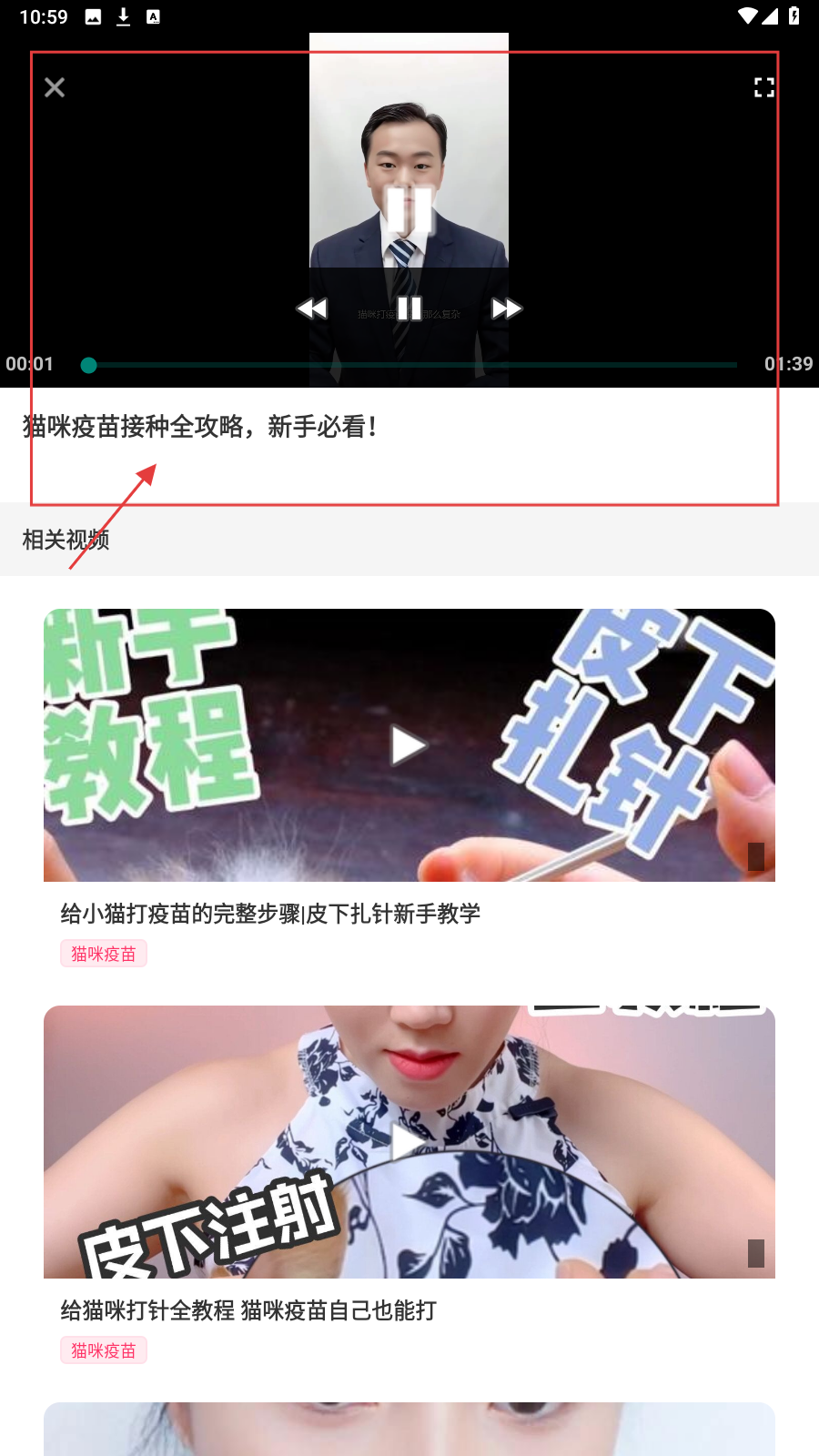 3、进入视频播放页,认真观看视频,学习猫咪疫苗知识。