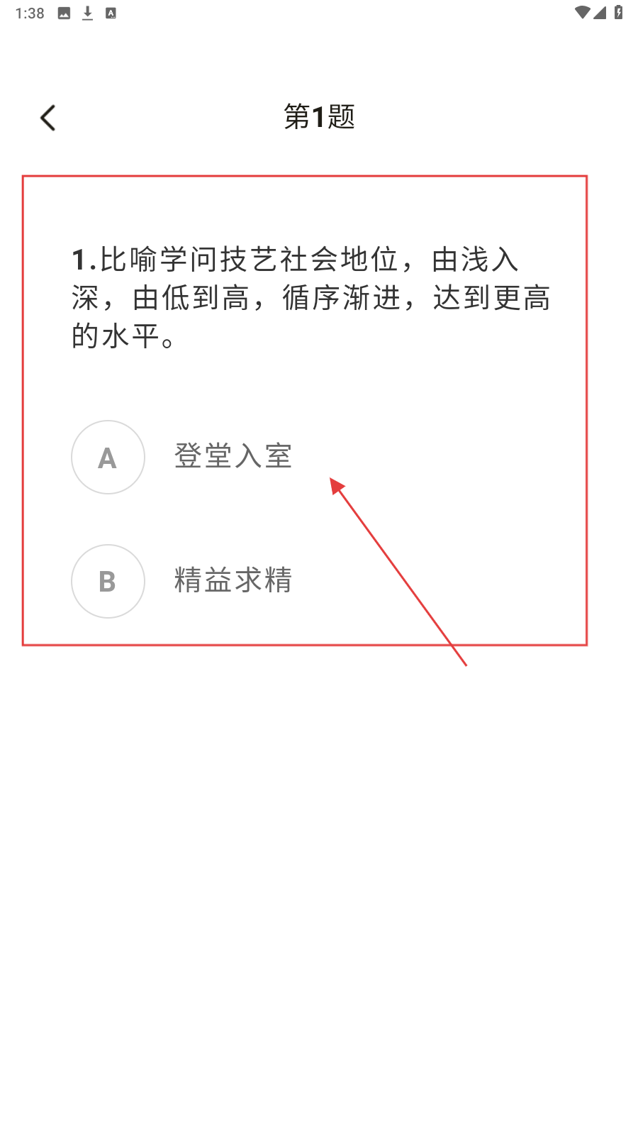 2、答题时,看题干描述,如第1题对应【登堂入室】,选对选项推进。