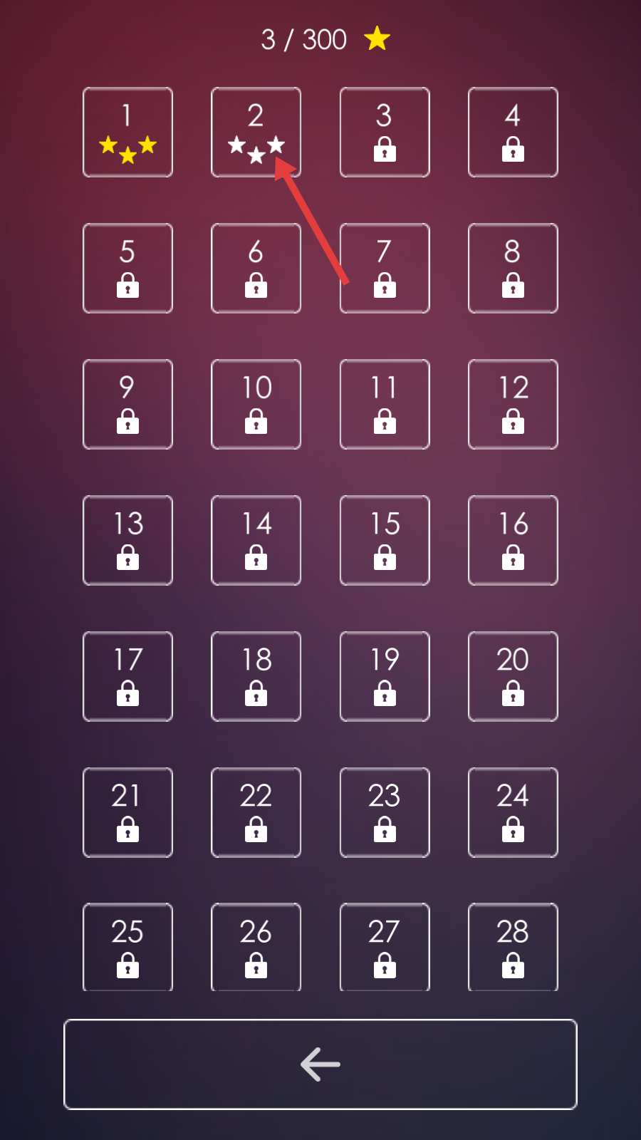 1、关卡页选择【第2关】,当前总星数【3/300】,积累星星解锁后续关卡。