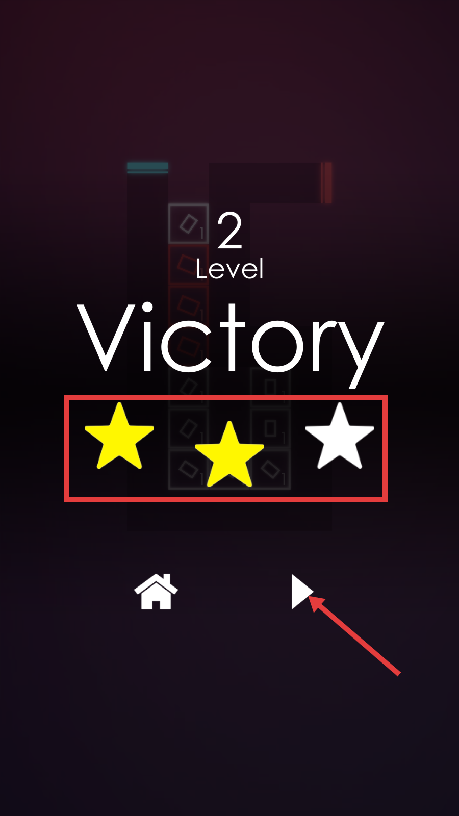 4、胜利后获【2黄星】评价,点击箭头推进下一关,持续积累星级拓展关卡池。