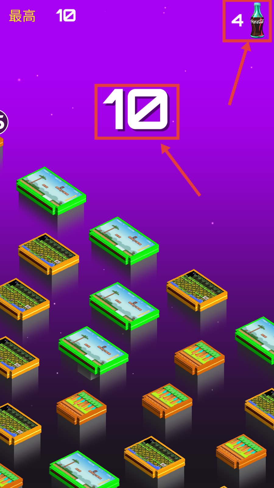 4、关注上方【最高-10】分数与【可乐-4】计数,优化移动路径提升游戏收益。