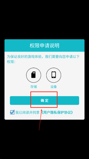 1、同意权限:选“我已阅读并同意《用户隐私保护协议》”后点击“确定”。