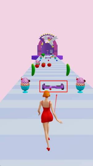 2、控制角色前进:操控小姐姐躲避前方障碍,通过吃东西维持身材,调整路线避开危险,向终点稳步推进。