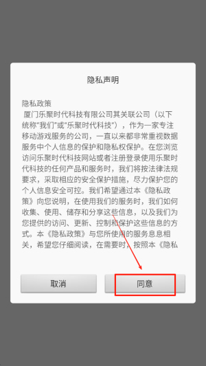 1、同意隐私政策:在游戏启动界面,阅读隐私政策并点击“同意”按钮以继续。