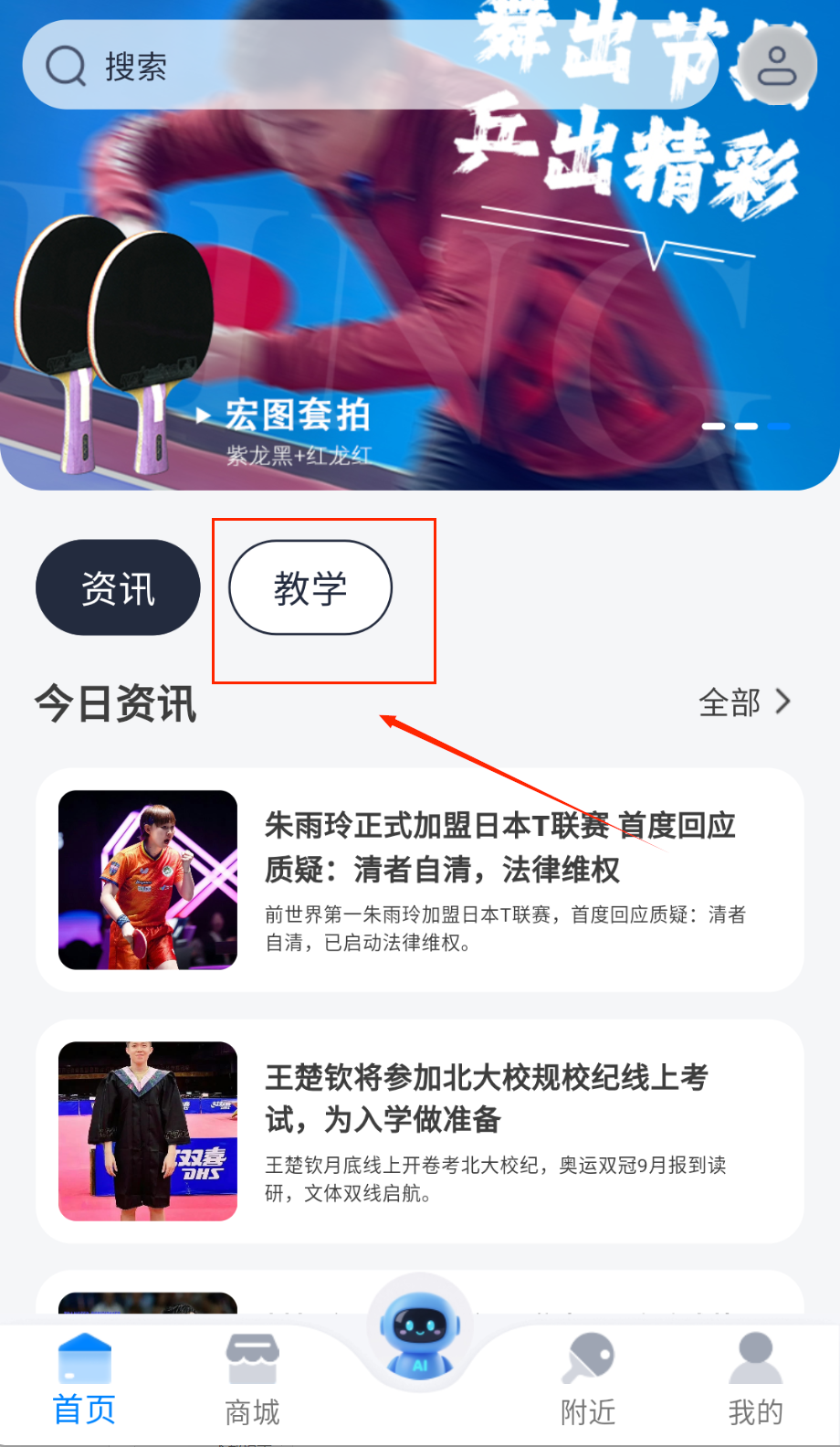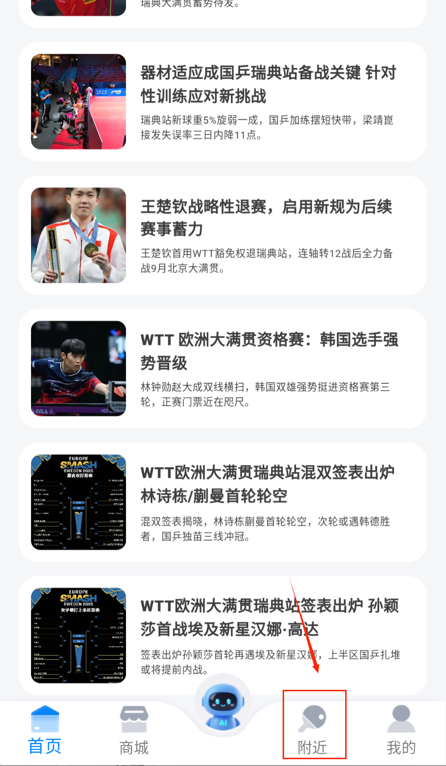 4、在社区板块查看附近球友动态和球馆信息,预约线下切磋交流,在商城选购专业乒乓球装备辅助训练。