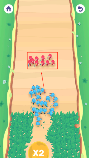 3、扩充己方队伍:吸纳路径上的敌人加入团队,积累人数增强实力,让队伍规模随闯关逐步壮大,提升战斗力。