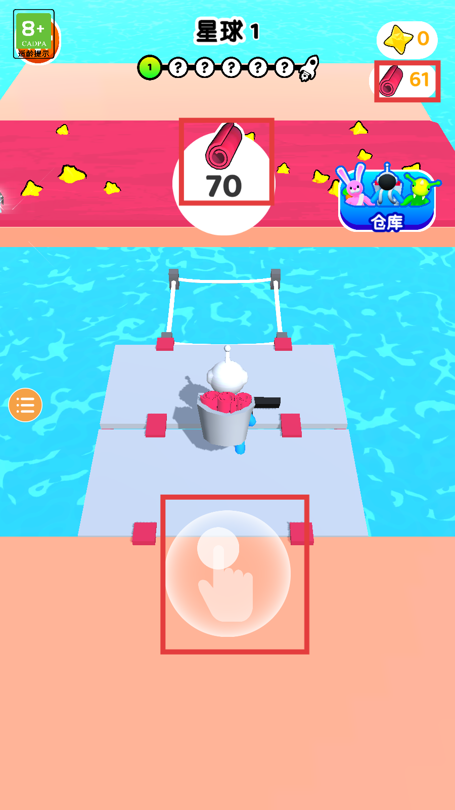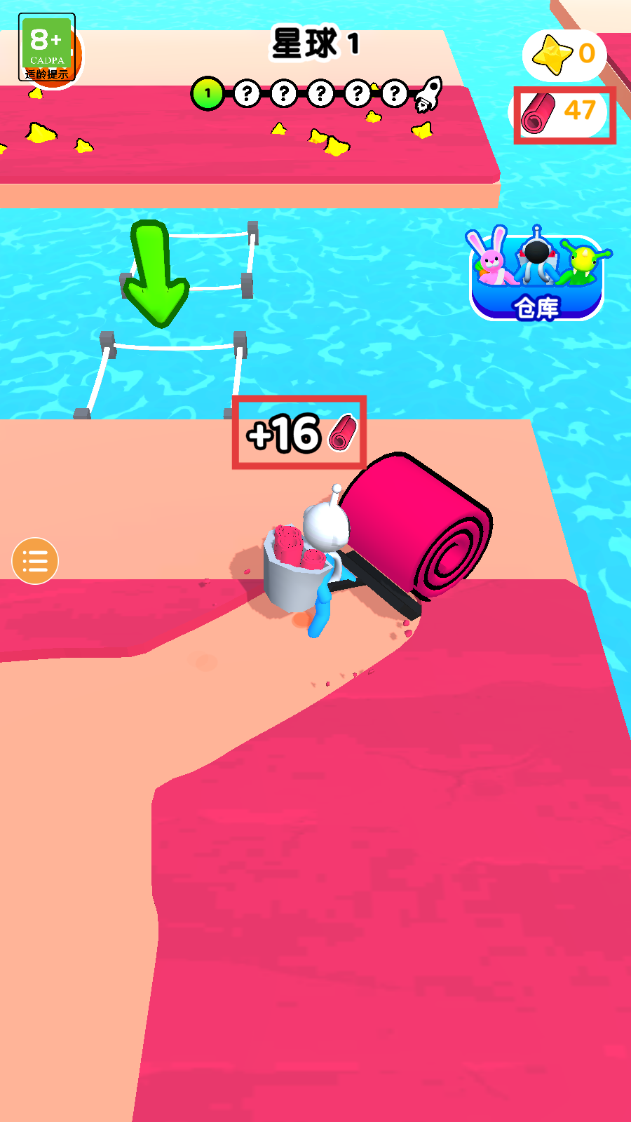 1、在星球1收集粉色卷材(如+16),积累资源(右上角卷材数实时更新)。