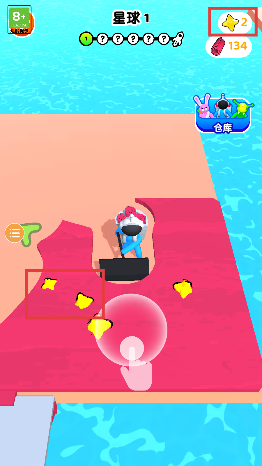 3、挖掘场景内黄色星星,提升右上角星星数量,完成阶段收集目标。
