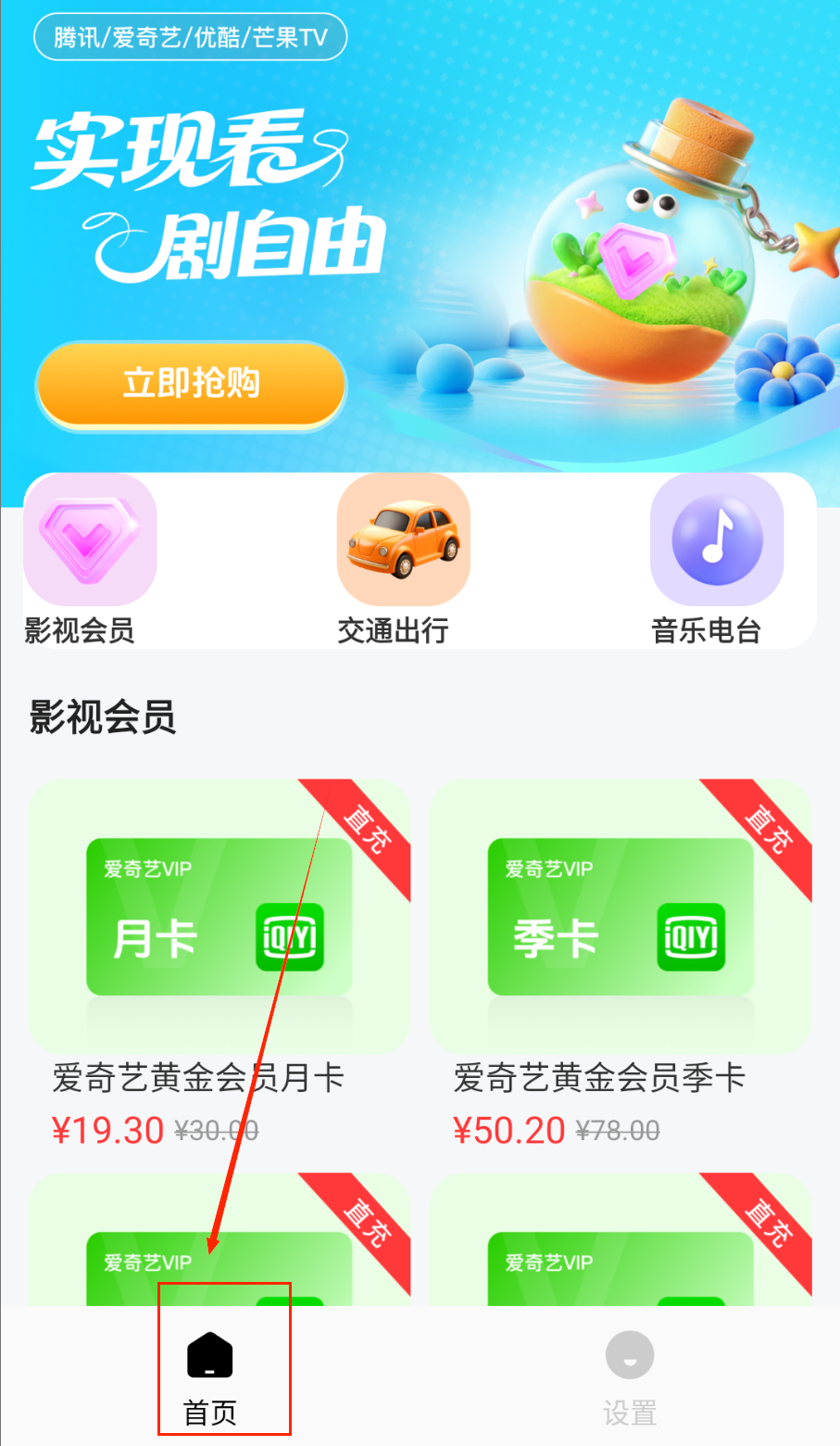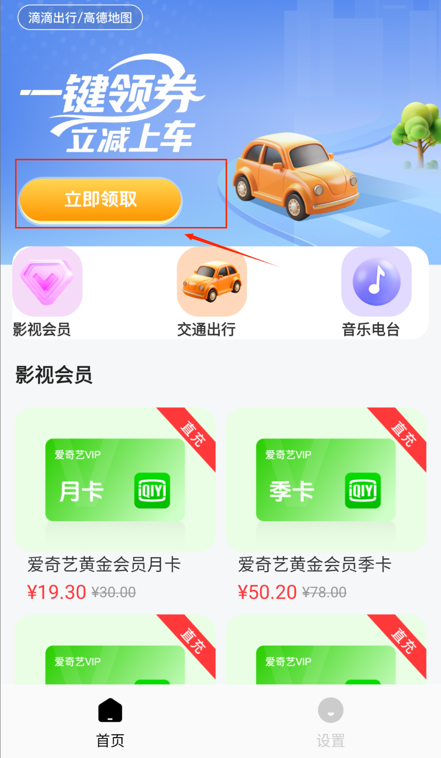 1、通过官方渠道下载安装应用后,首页会展示热门会员优惠信息,包括影视平台月卡季卡等选项,点击分类标签可筛选音乐或出行类专属折扣。