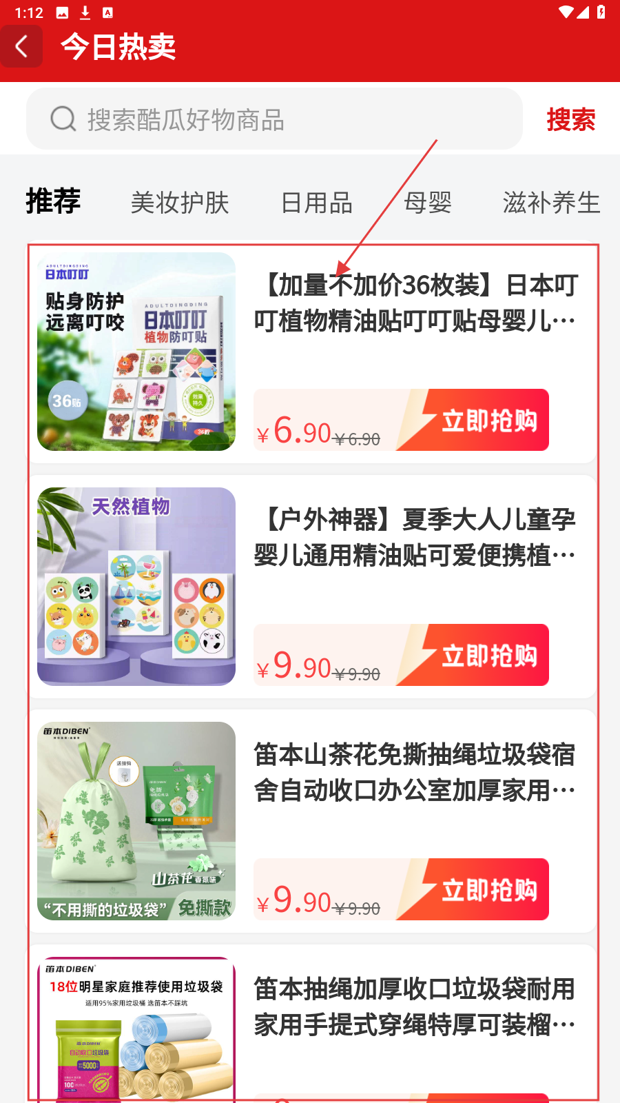 2、在【今日热卖】栏点【更多】,浏览日本叮叮精油贴等热销商品。