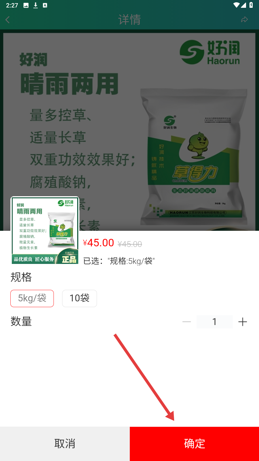 4、选好【规格】与数量,点【确定】完成购买流程,快速下单商品。