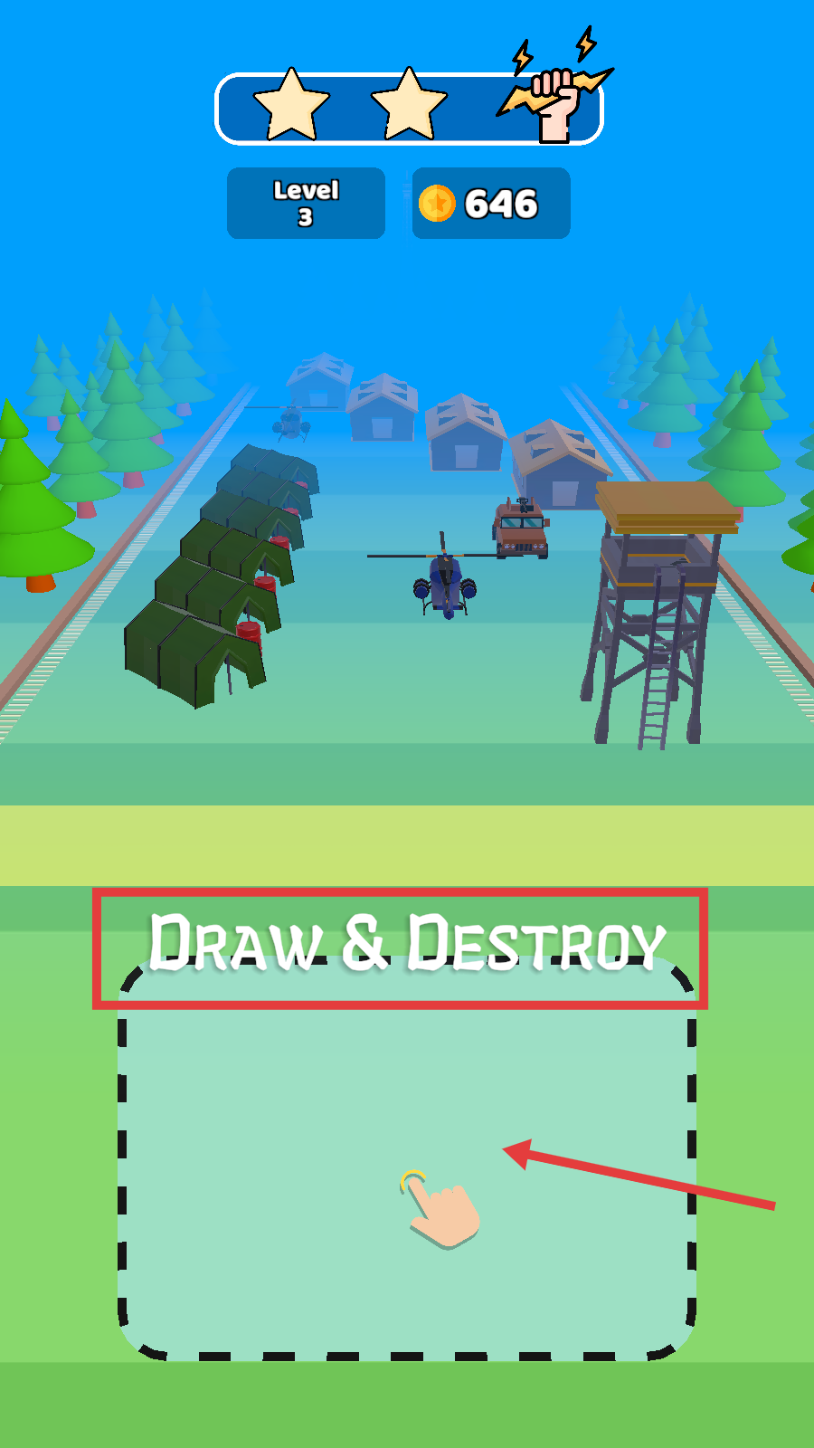 1、在【DRAW-&-DESTROY】区域绘制图案,触发破坏机制,开启Level-3的战斗。