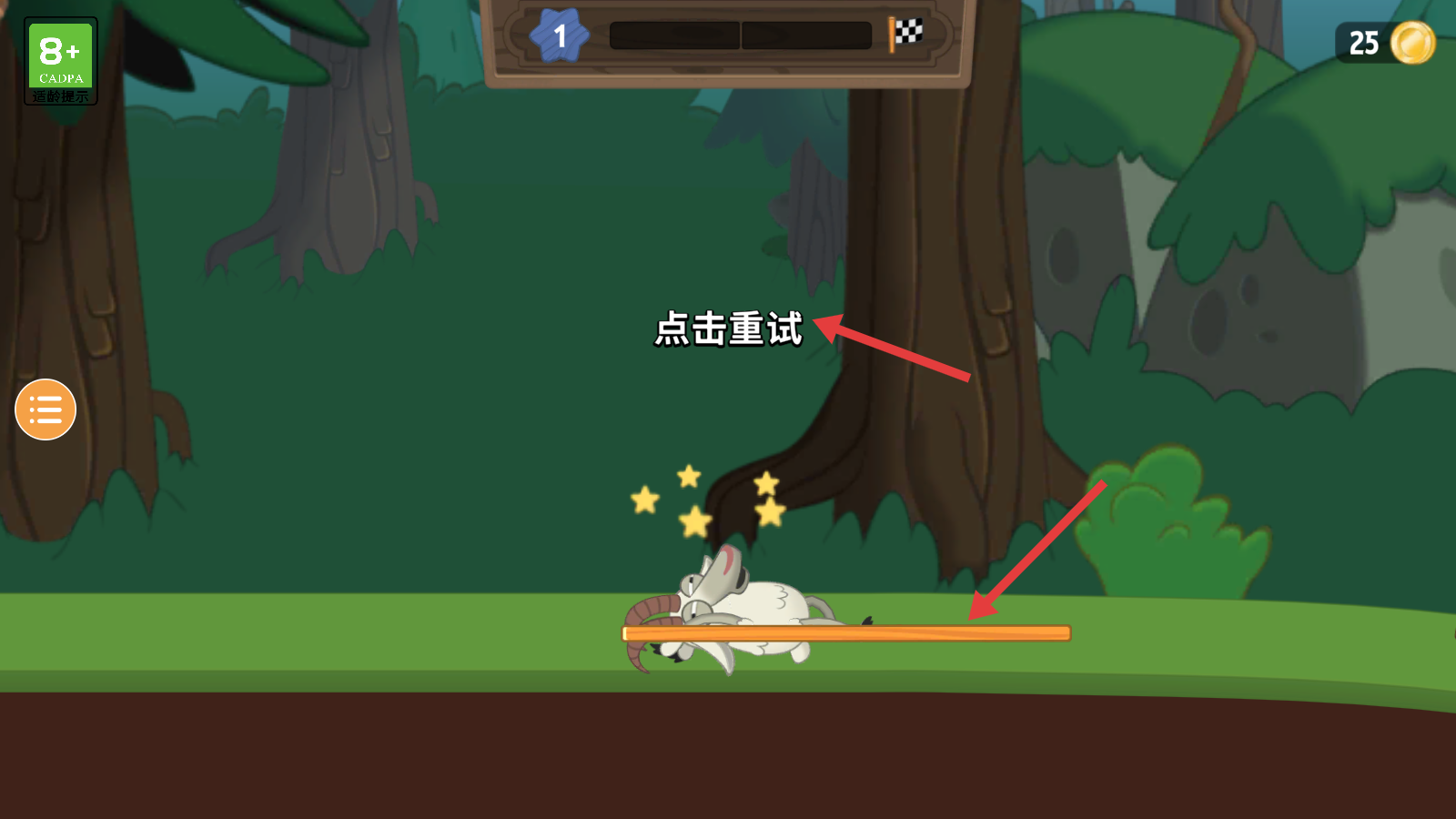 4、若摔倒点击【重试】按钮,调整操控节奏,避免高跷失衡,重新挑战。