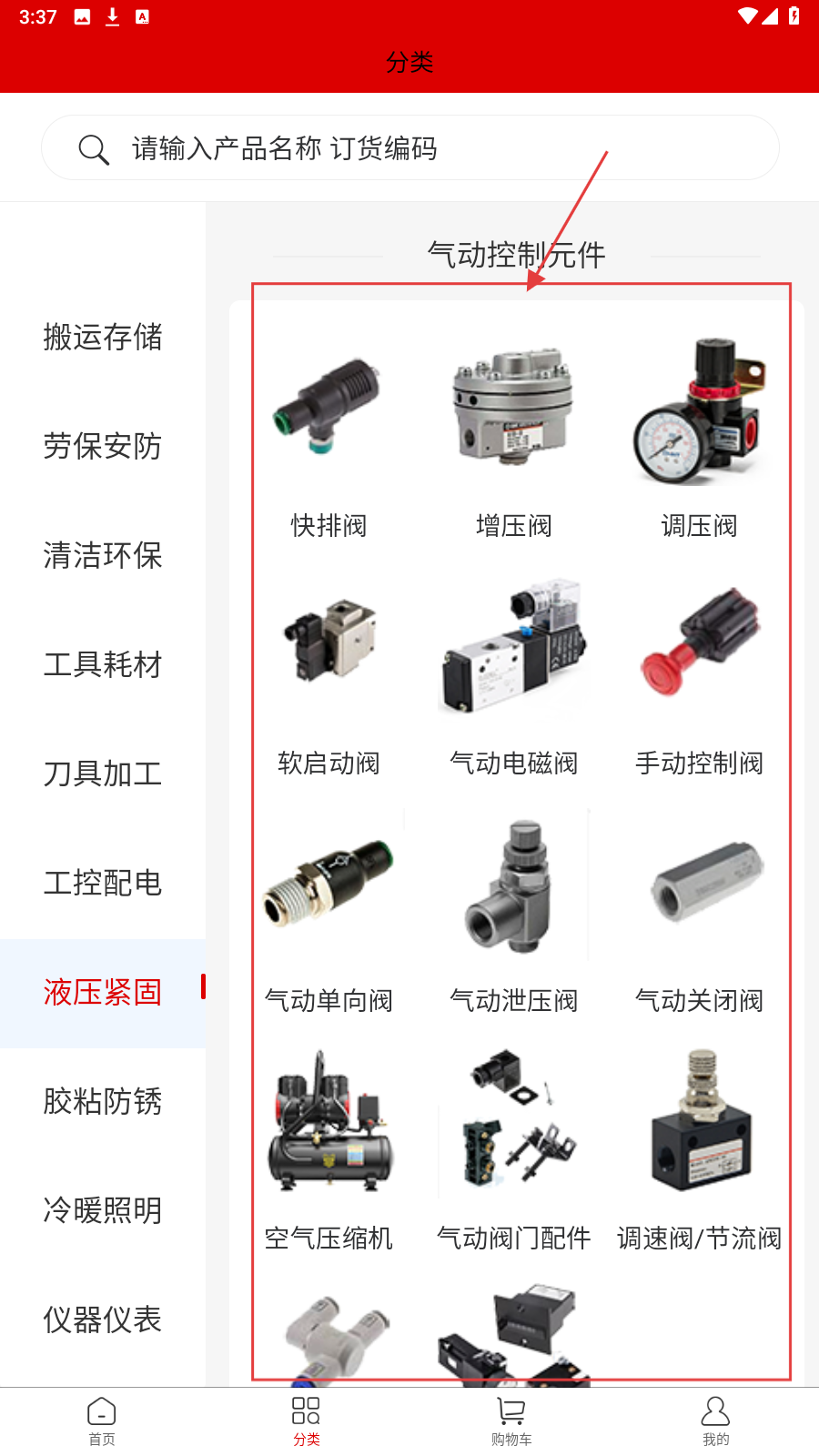 2、选【液压紧固】等分类,浏览【气动控制元件】下的具体商品。