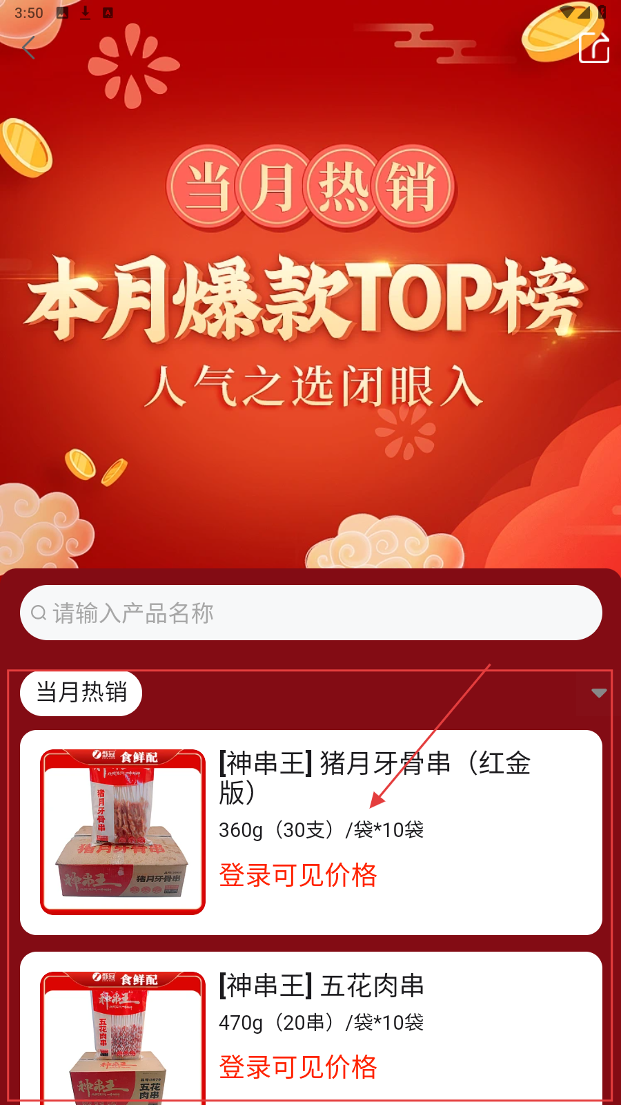2、在当月热销页,选心仪商品,如猪月牙骨串,查看详情。