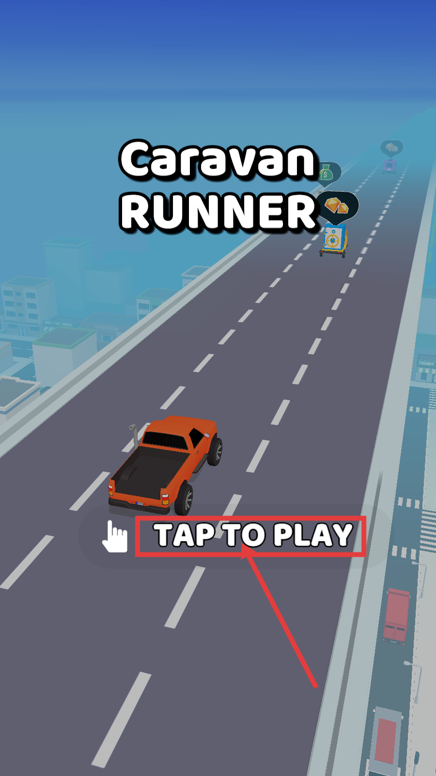 1、进入【Caravan-Runner】游戏,点击【TAP-TO-PLAY】启动,操控橙色卡车开启道路挑战。