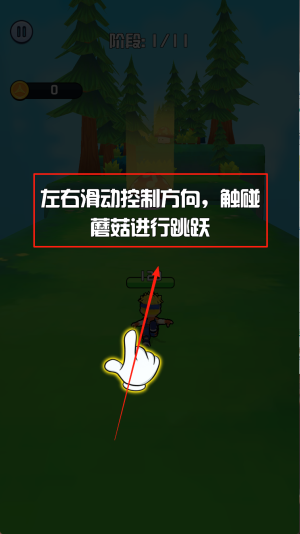 3、学习移动:在关卡0/0教程中,左右滑动屏幕控制方向,触碰蘑菇即可跳跃。