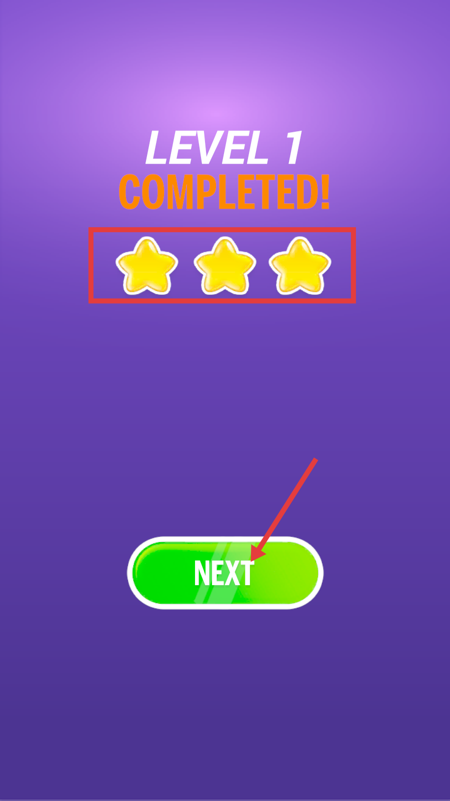 4、通关【LEVEL-1】获三星评价,点击绿色【NEXT】,继续挑战后续关卡。