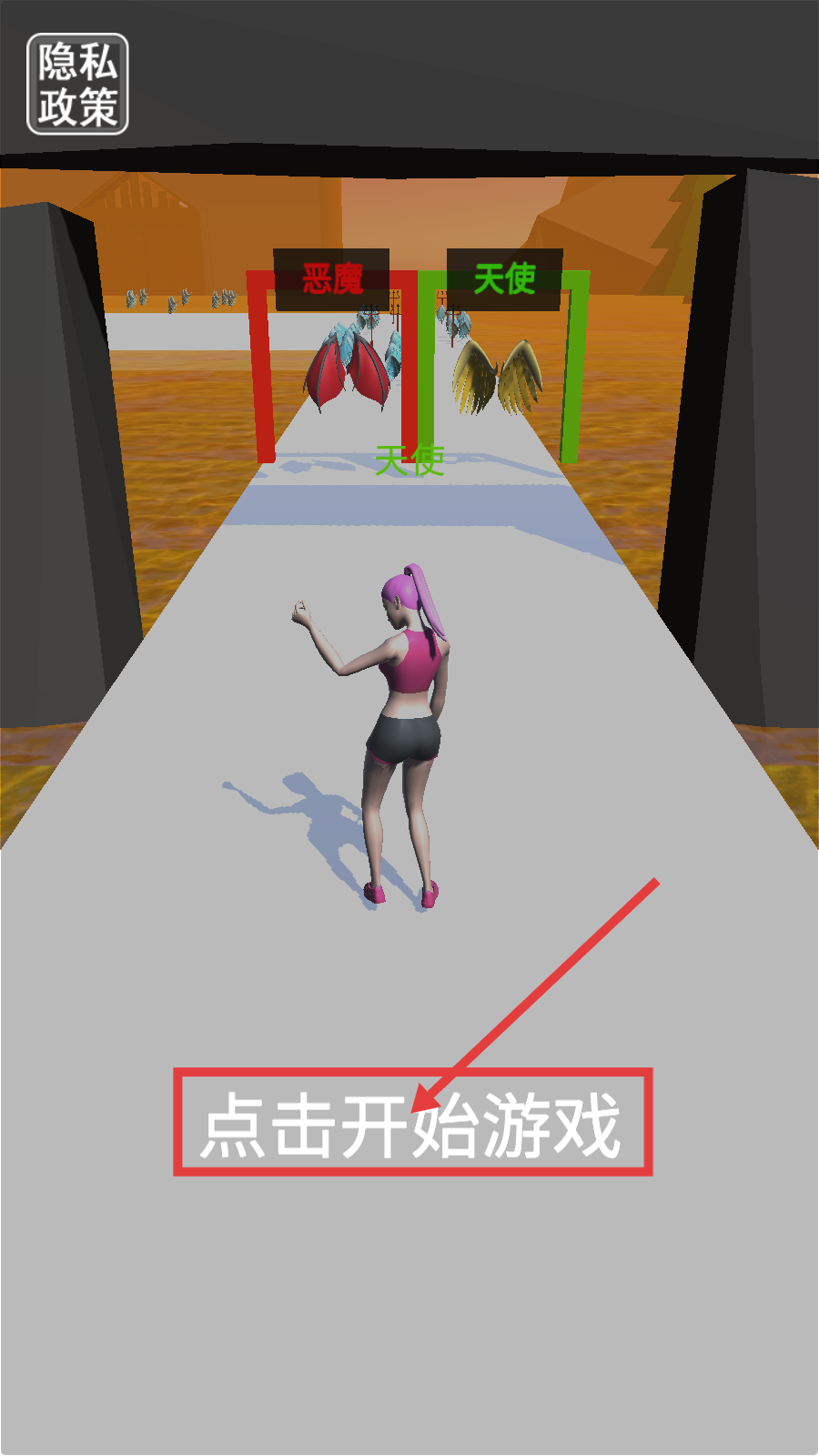1、点击【点击开始游戏】,面对【恶魔】与【天使】双门,抉择路线开启属性养成之旅。