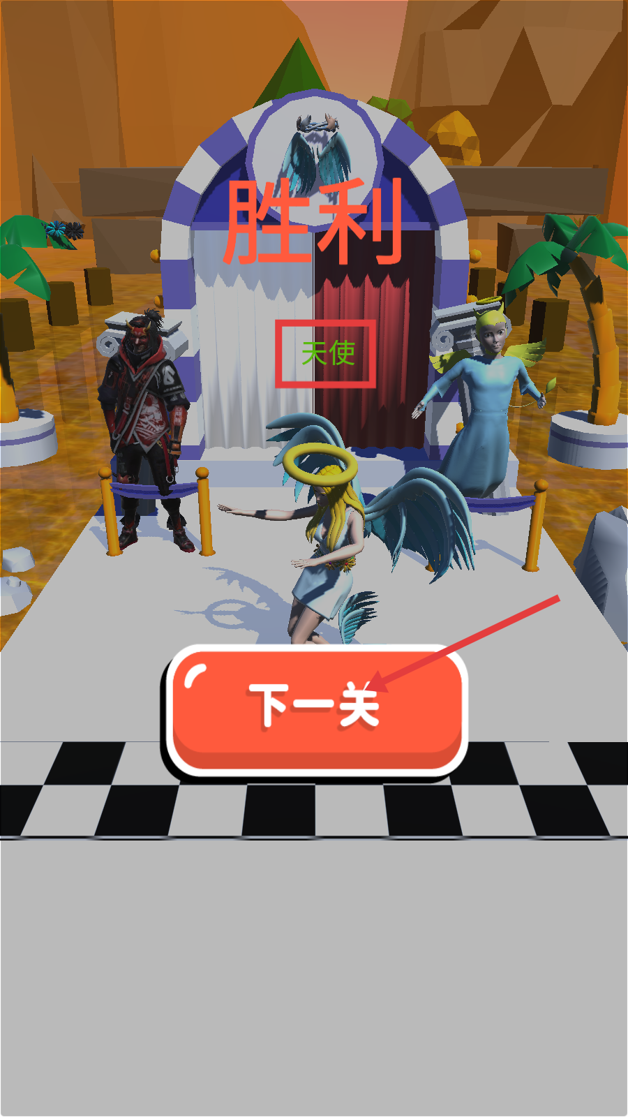 4、成功蜕变为【天使】获胜利,点击【下一关】,开启更复杂的阵营抉择挑战。