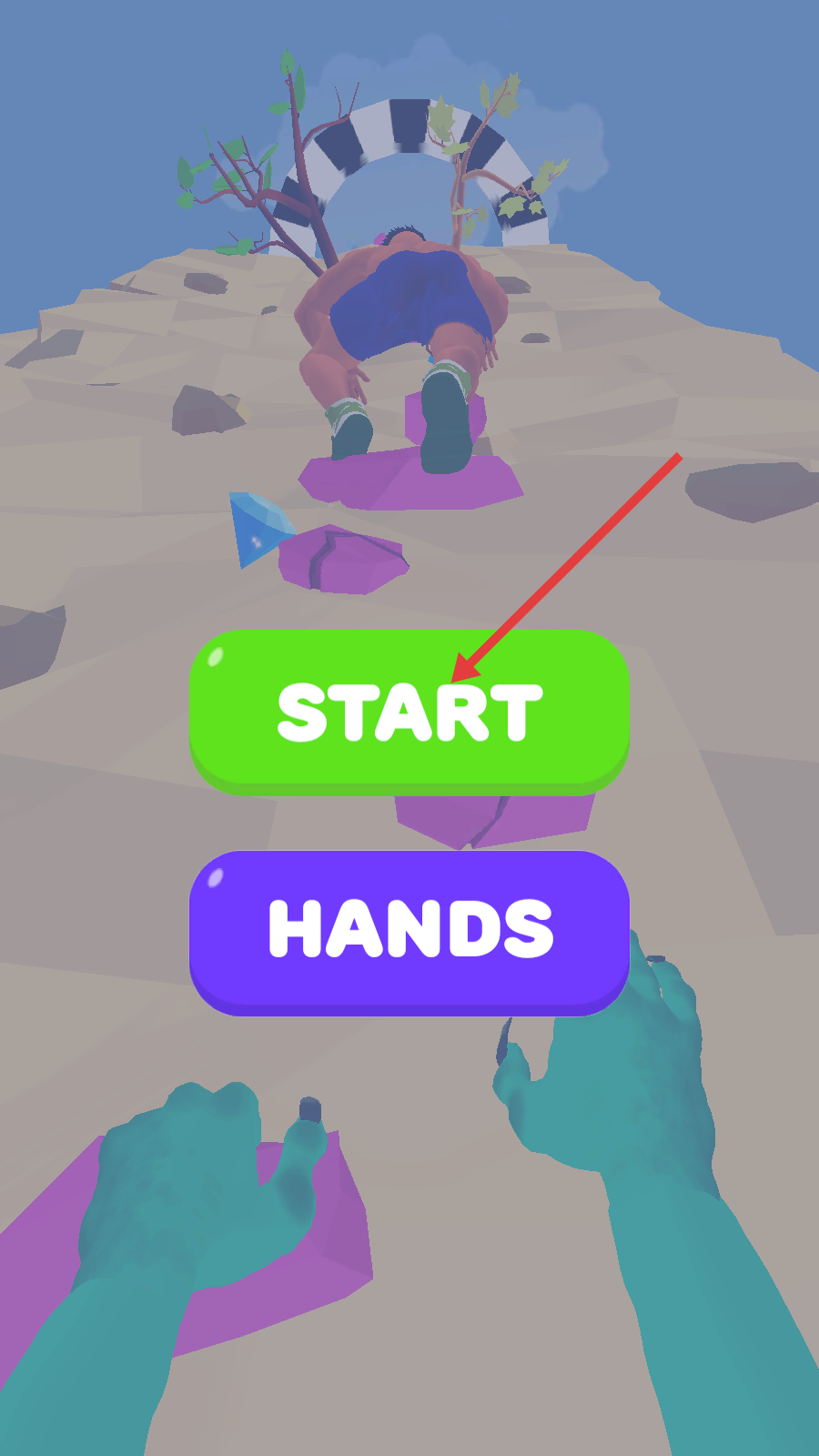 1、点击【START】按钮启动关卡,操控角色在沙质地形开启攀爬冒险,开启挑战流程。