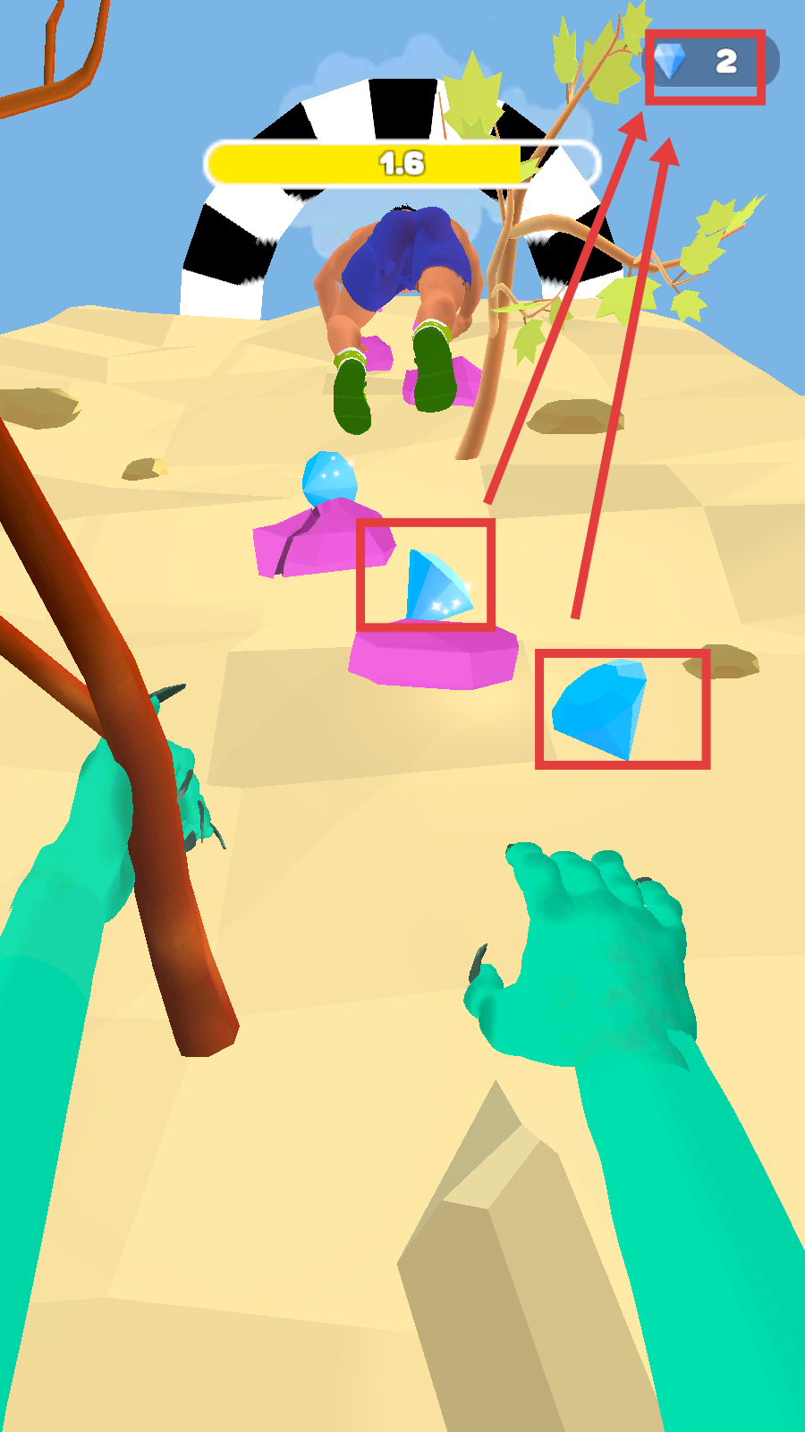 3、攀爬时优先收集路径上的蓝色钻石,逐步积累钻石数量,提升通关收益至【5】。