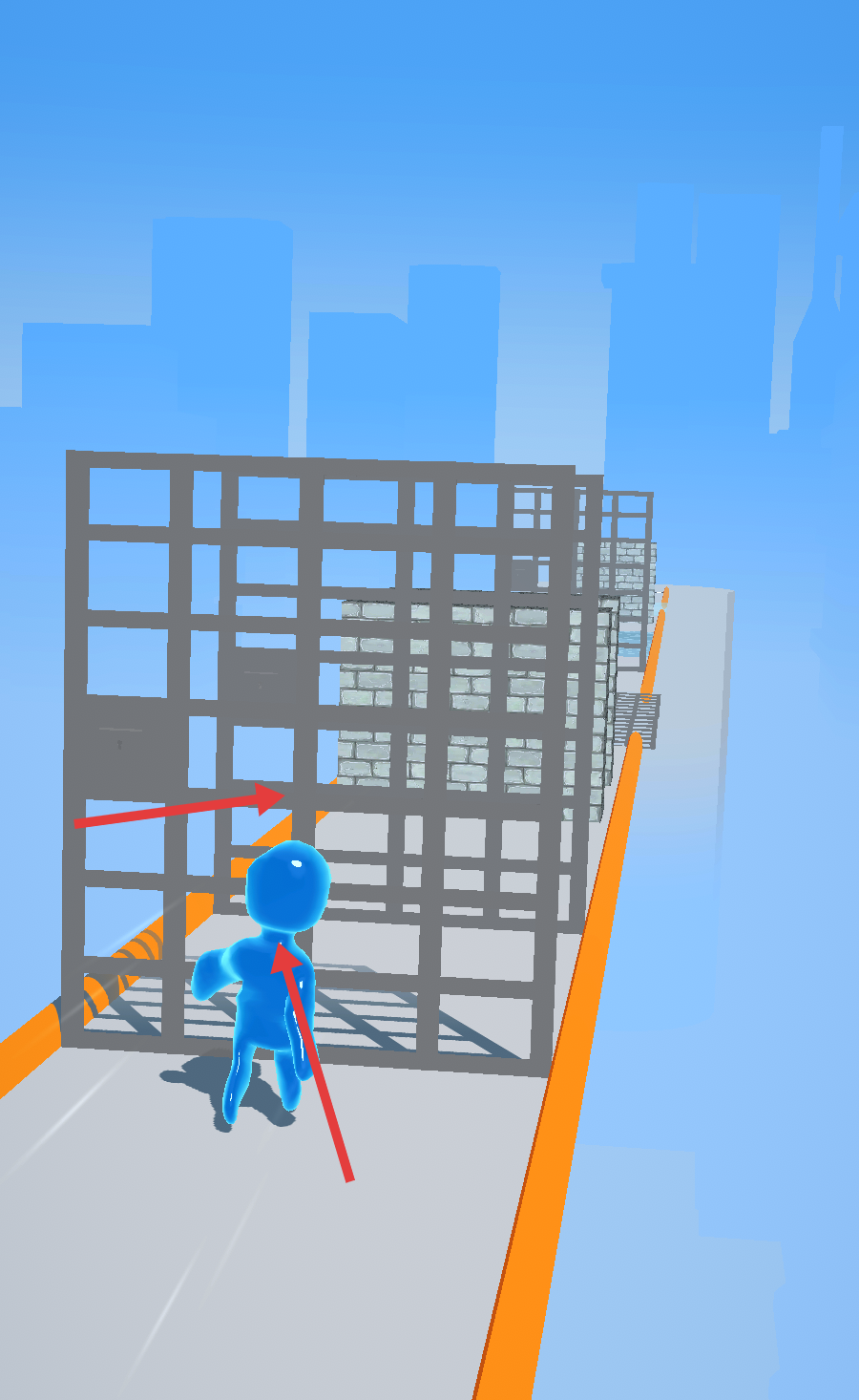 2、操控角色移动,穿过网格状障碍,沿橙色路径前行,留意前方场景变化。