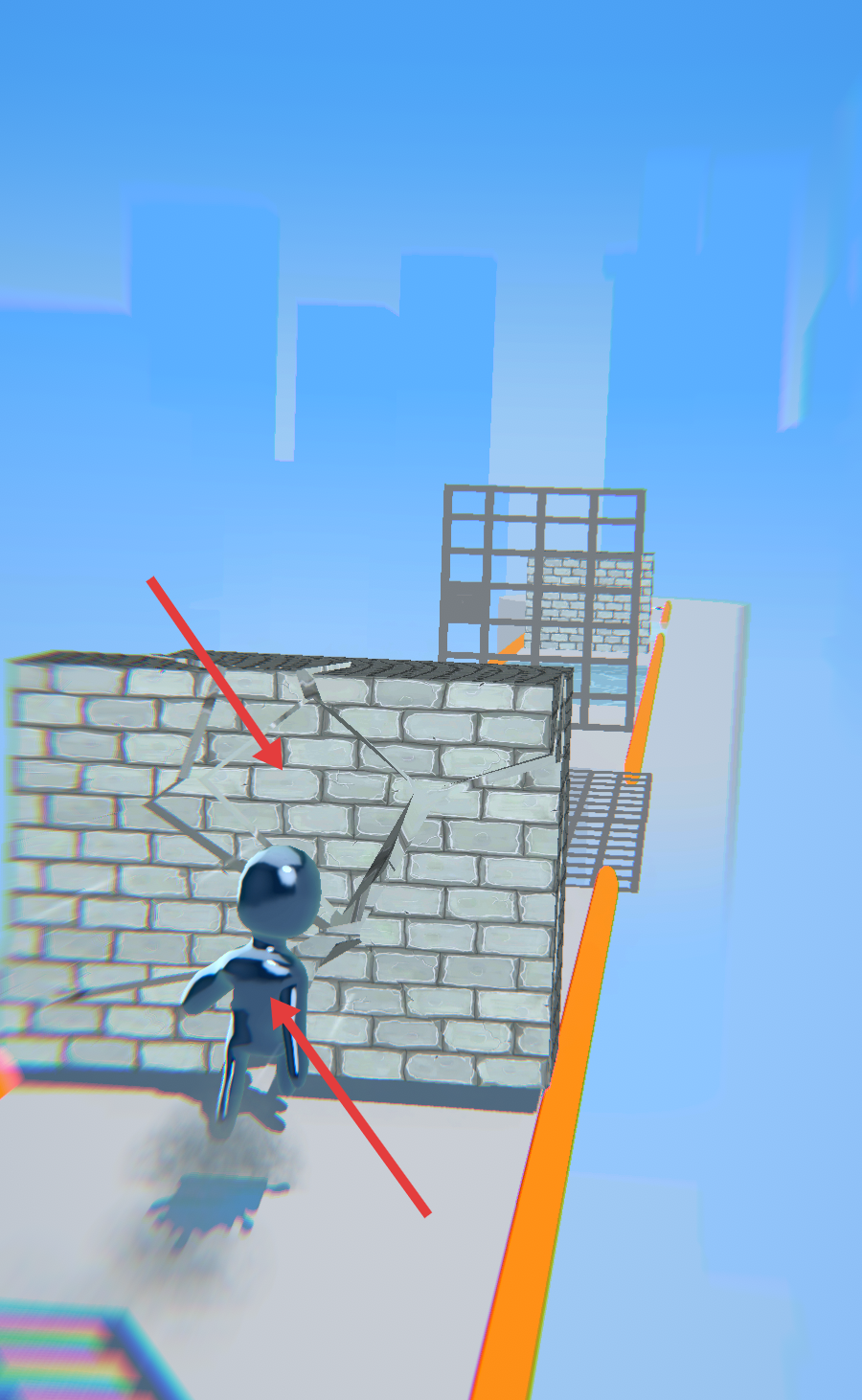 3、切换为黑色形态,撞击砖墙突破障碍,借助冲刺动作推进关卡进程。