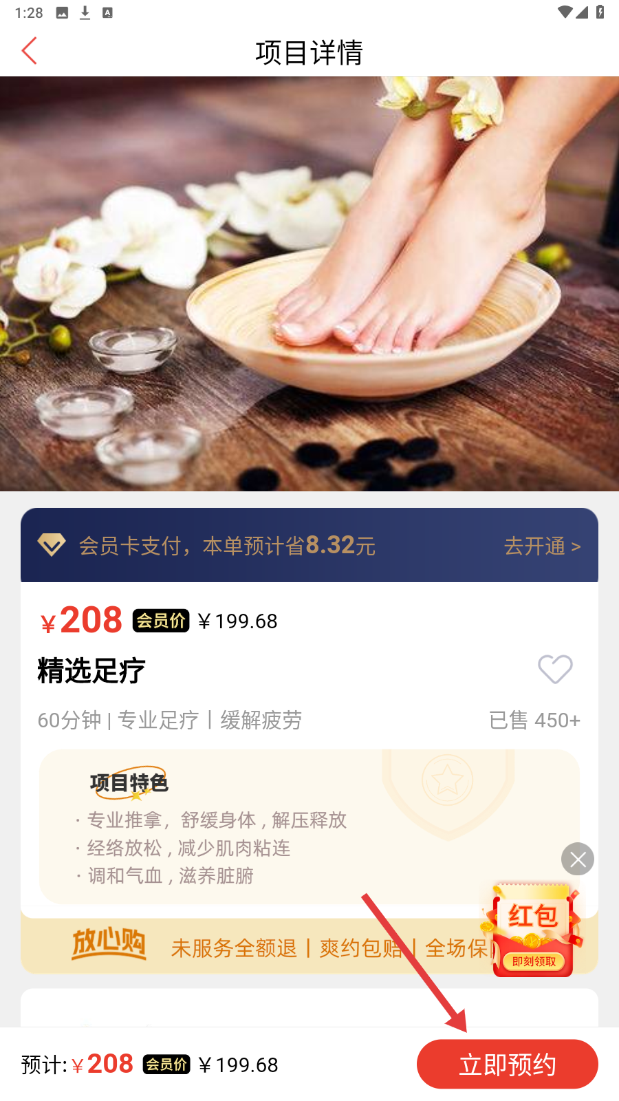 3、查看项目详情,确认内容后点【立即预约】,即可预订。