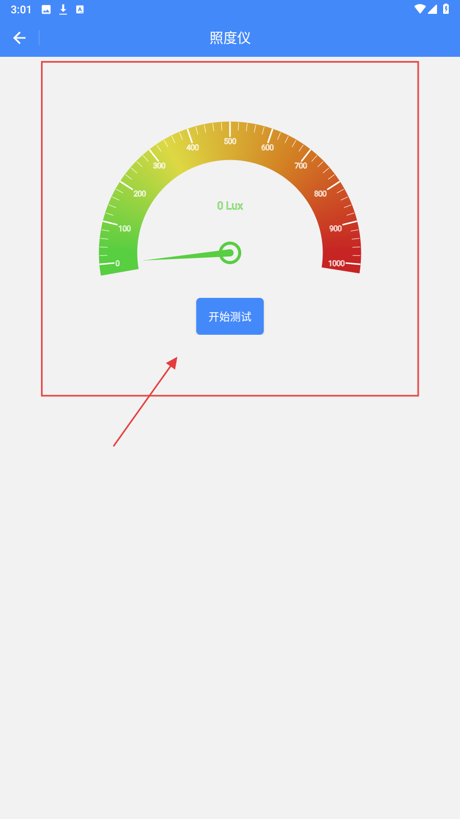 4、点【照度仪】,点【开始测试】,检测环境光照强度,辅助场景布置。