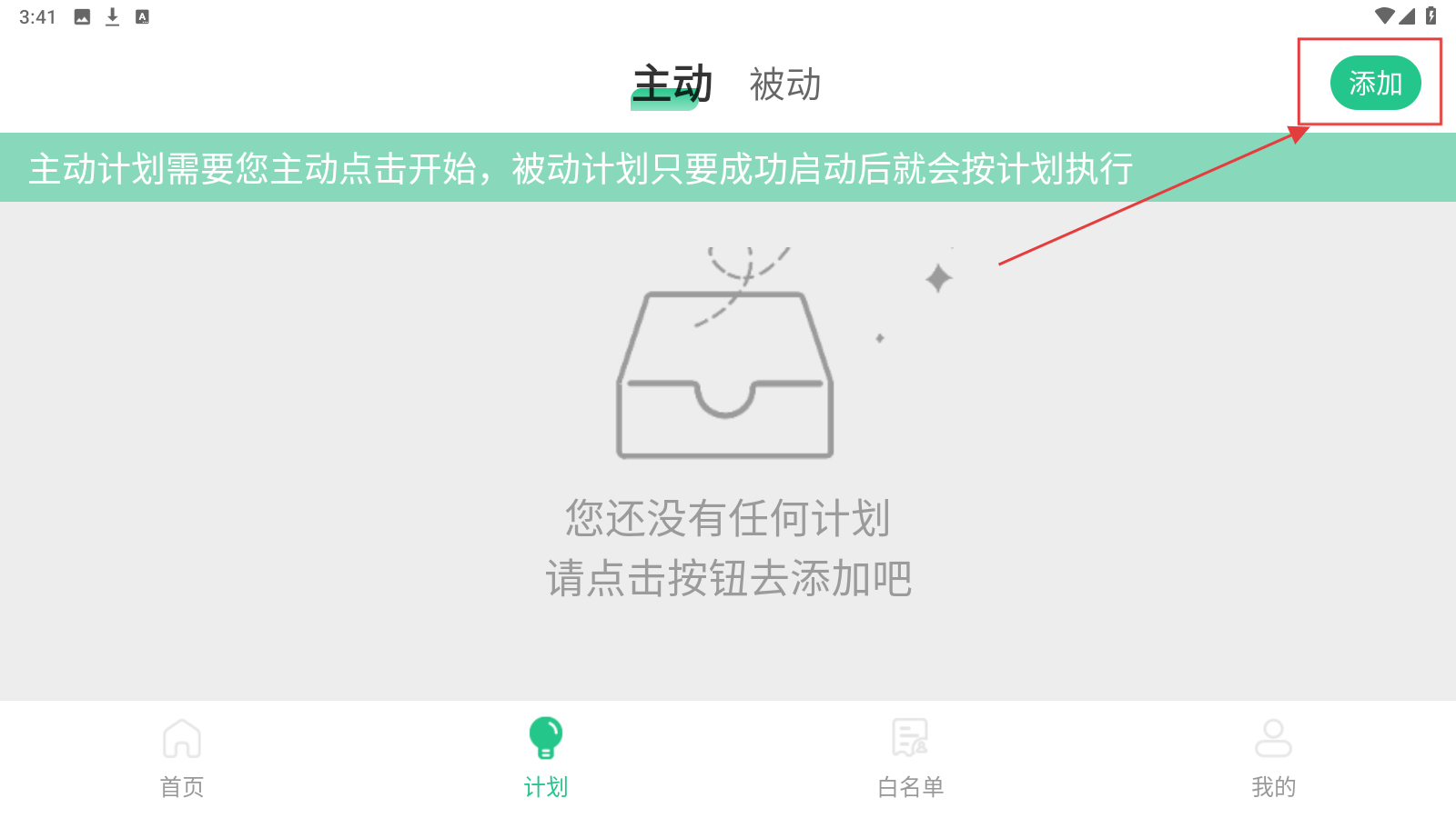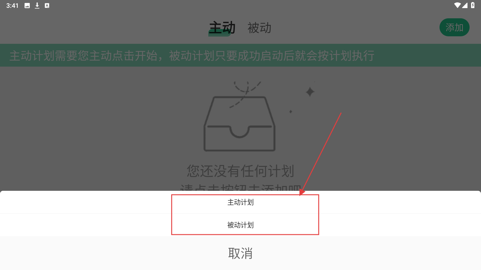 2、点【添加】后选【主动计划】或【被动计划】,按需创建。