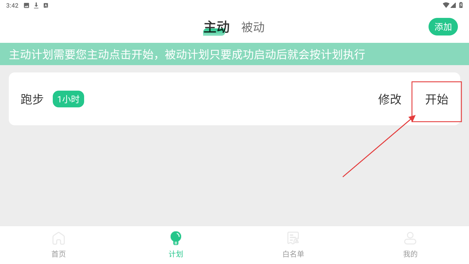 4、已添加计划旁点【开始】,即可启动主动计划执行。