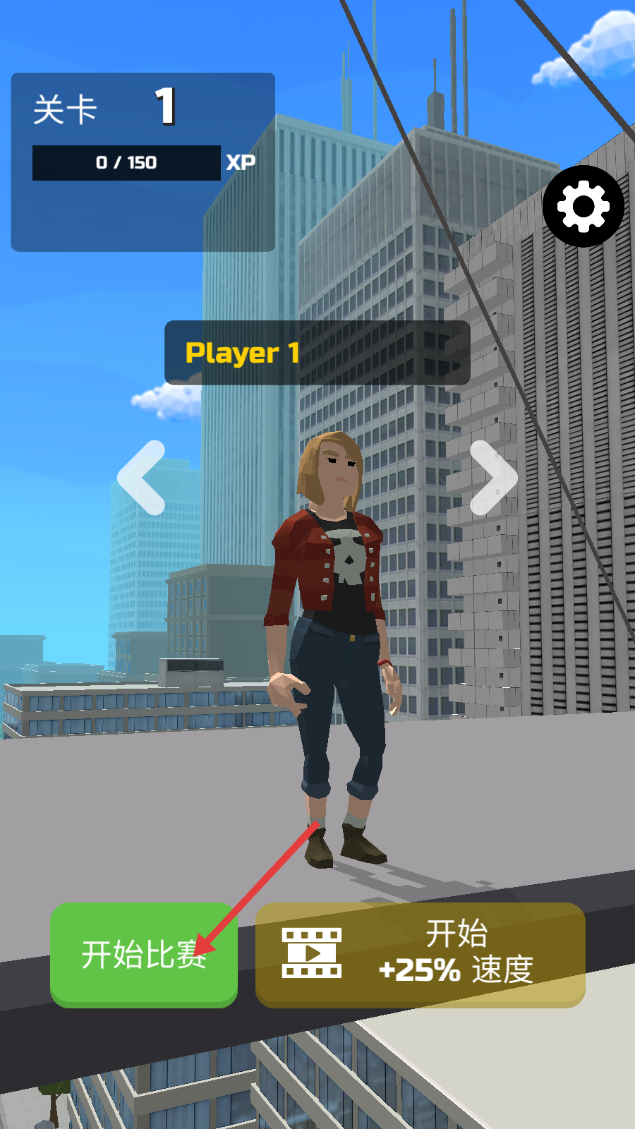 1、点击【开始比赛】进入【关卡-1】,初始【XP-0/150】,准备开启城市竞速冒险。