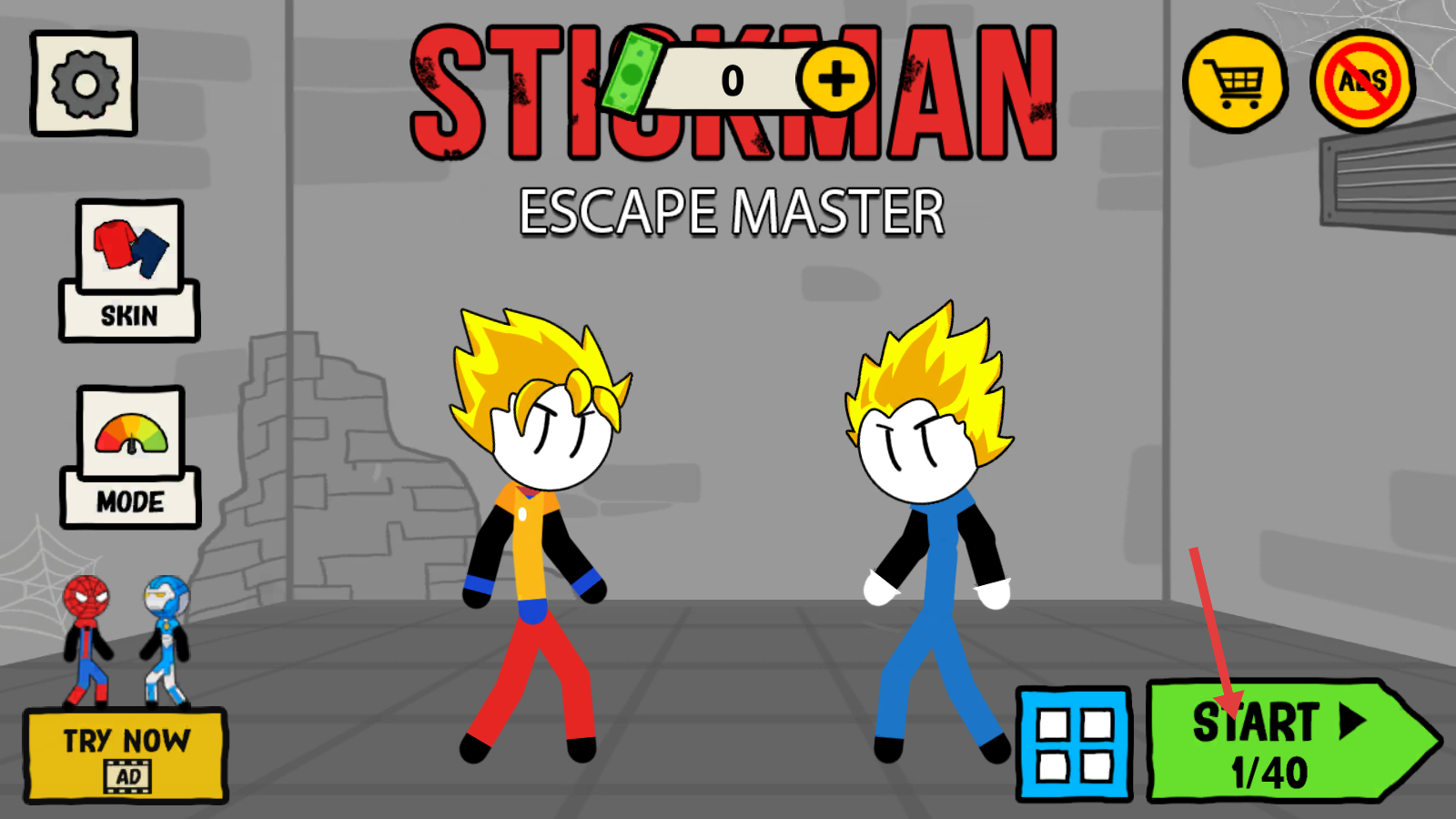 1、点击主界面【绿色START(1/40)】,开启《STICKMANESCAPEMASTER》第1关冒险。