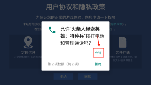 3、授权通话权限:在第二项权限提示点击“允许”,完成全部权限授权。